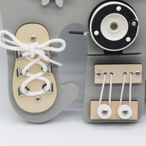 Panoul educativ din lemn „Elefănțel” W12D558 este o jucărie interactivă colorată, creată pentru a dezvolta motricitatea fină, logica și abilitățile senzoriale ale celor mici. Busyboard-ul include diverse elemente: rotițe, labirinturi, comutatoare, închizători, piese de numărat și alte module interactive care îi ajută pe copii să exploreze lumea prin joacă.