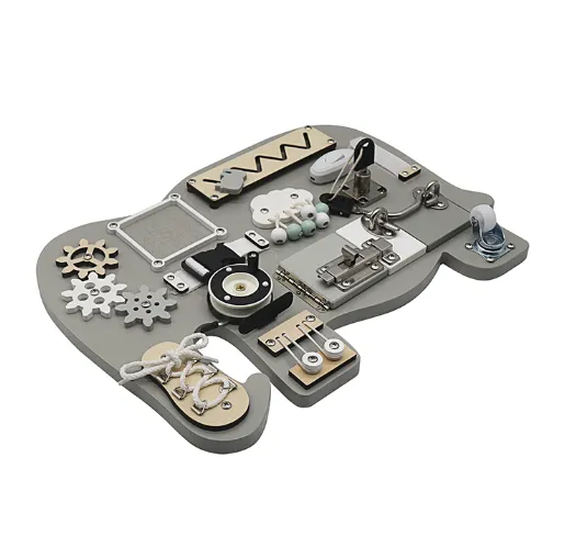 Designul atrăgător în forma unui elefănțel captează atenția, iar lemnul natural și materialele sigure de înaltă calitate fac jucăria durabilă și potrivită pentru utilizare zilnică. Busyboard-ul stimulează independența, concentrarea și creativitatea.