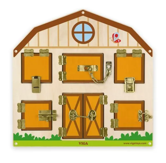 Busyboard din lemn „Deschide lacătul” busyboard din lemn, jucărie educațională VigaToys. Busyboard-ul are scopul maxim de a dezvolta logica, viteza de reacție și viteza de finalizare a sarcinilor. În ceea ce privește calitatea, dimensiunea și parametrii, placa de afaceri VigaToys este potrivită atât pentru uz casnic, cât și pentru camera copiilor, studiouri de dezvoltare timpurie și grădinițe private.