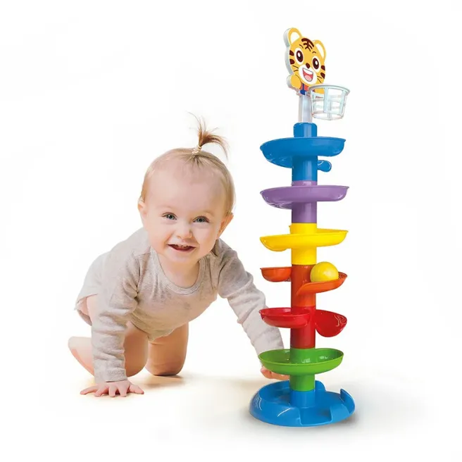 Descoperirea lumii din jurul tău poate fi atât de distractiv! Alege jucăriile potrivite pentru a învăța și a te distra în același timp. Jucăria „Tower” cu pistă și mingi colorate va contribui la dezvoltarea tactilă și vizuală a copiilor, iar mingile plăcute la atingere vor stârni curiozitatea micilor exploratori de a le încerca în acțiune. Lăsați baloanele să urmeze traseul și bucurați-vă de mișcările și sunetele plăcute pe care le emit pe măsură ce merg pe tot drumul.
