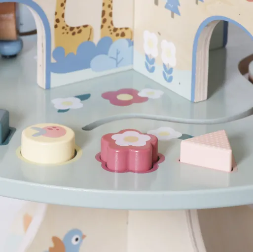 Panoul senzorial W12D751 este o jucărie educativă din lemn, concepută pentru dezvoltarea motricității fine și a abilităților practice ale copilului. Include elemente interactive precum încuietori, rotițe, clapete, șireturi și comutatoare, care stimulează curiozitatea și coordonarea mână-ochi. Fabricat din lemn natural, cu margini rotunjite și materiale sigure pentru copii. Ideal pentru joc independent și învățare prin explorare. Potrivit pentru copii de la 1+ ani.