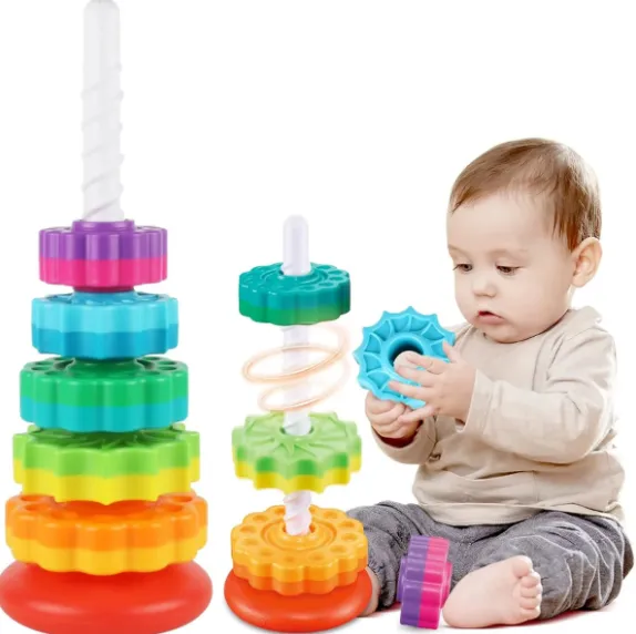 Piramida „Curcubeu” este o jucărie educativă captivantă pentru copiii de la 1 an. Formată din 5 inele colorate, care se așază pe suport, ajută la dezvoltarea coordonării mână-ochi, a motricității fine și a înțelegerii dimensiunilor. Turnul se rotește ușor, adăugând un plus de distracție și stimulând percepția vizuală.