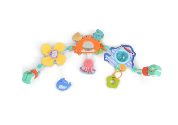 Stimulează dezvoltarea abilităților motorii fine, atenției, vederii, percepției culorilor, precum și a reflexelor de apucare și percepției tactile. Potrivit pentru cărucior, pătuț sau landou.