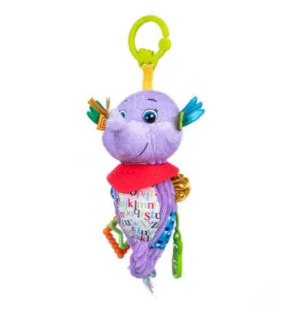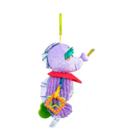 Monty calul de mare de pluș este partenerul perfect pentru îmbrățișări lungi! Corpul său violet este decorat cu diverse modele pentru a stimula vederea bebelușului tău. El poartă o bandă de cauciuc în jurul gâtului, care acționează ca guma de mestecat pentru bebelușii cărora le ies primii dinți. Aceasta este o jucărie potrivită care vă va însoți copilul încă de la naștere.