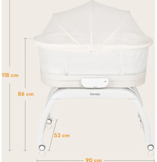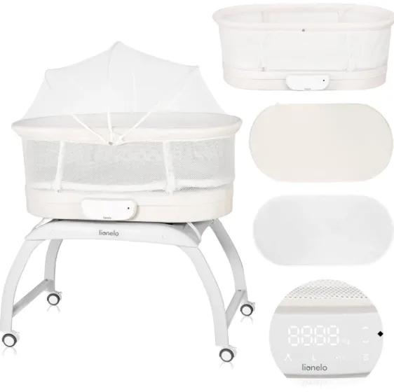 Lionelo Coral este un produs conceput pentru a satisface nevoile nou-născuților. Poate fi utilizat ca primul pătuț independent al bebelușului, dar este potrivit și ca pat atașabil sau chiar ca balansoar pentru copii. Landoul confortabil permite copilului să se odihnească în poziția optimă – plată –, chiar și atunci când funcția de leagăn este activată. Salteaua din spumă T25 cu densitate ridicată oferă suport stabil pentru coloană, asigurând un somn odihnitor. Funcția de leagăn blând liniștește copilul prin mișcări ritmice care amintesc de a fi ținut în brațe de un părinte, facilitând adormirea. Cântarul inovator încorporat permite cântărirea nou-născutului aproape în orice condiții.