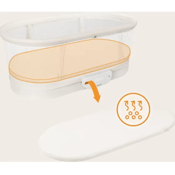 Pentru a ajuta părinții să-și adoarmă micuții sau să-i calmeze, pătuțul Coral dispune de o funcție de cutie muzicală. Cu ajutorul unei telecomenzi dedicate, părinții pot alege dintre 12 sunete, inclusiv zgomot alb, sunete din natură sau cântece de leagăn. Zgomotul alb este excelent pentru mascarea zgomotelor de fundal și îmbunătățirea calității somnului. Cu o selecție atât de diversă de melodii și sunete, părinții pot personaliza experiența audio pentru a satisface nevoile și preferințele copilului lor.