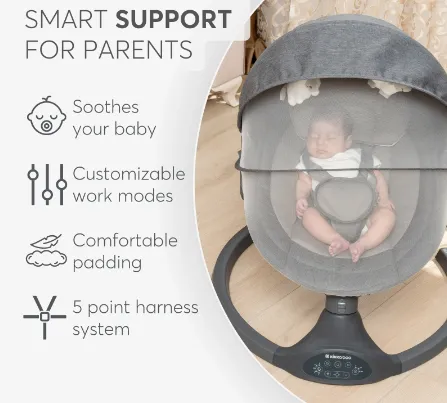 Funcționare silențioasă: Mișcare lină și fără zgomot, ideală pentru a calma bebelușul fără întreruperi.