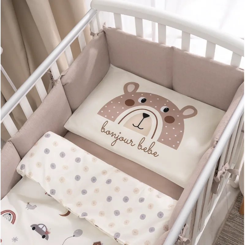 Setul Bonjour Bebe va fi completat cu bare de protecție din bumbac moale de culoare bej.