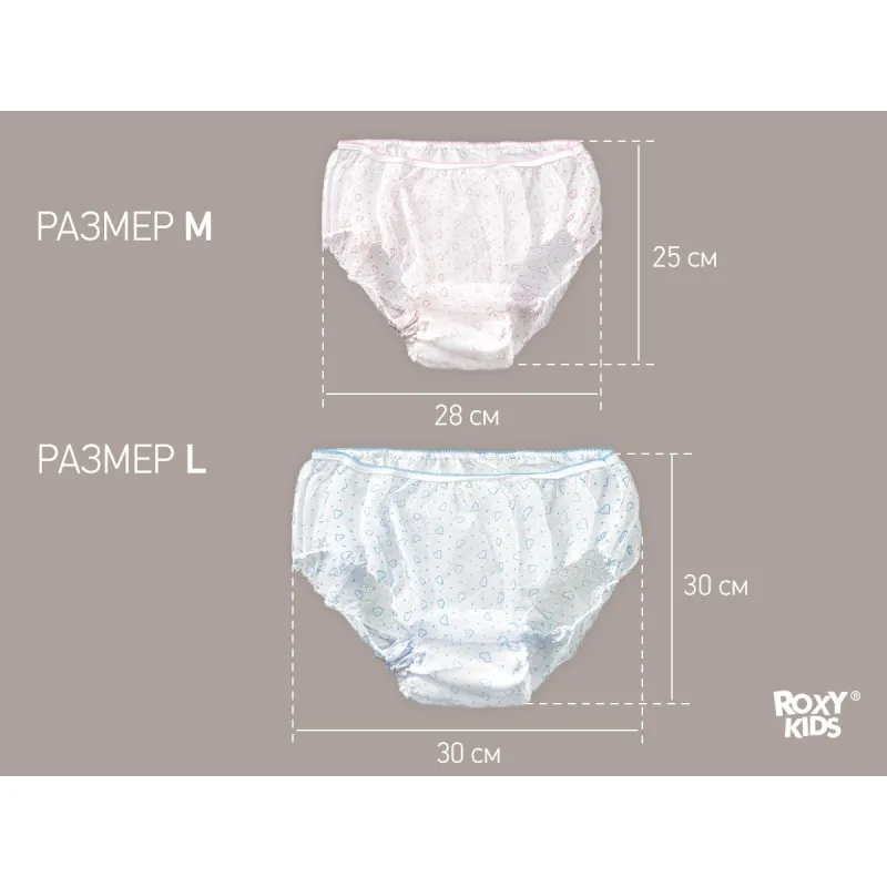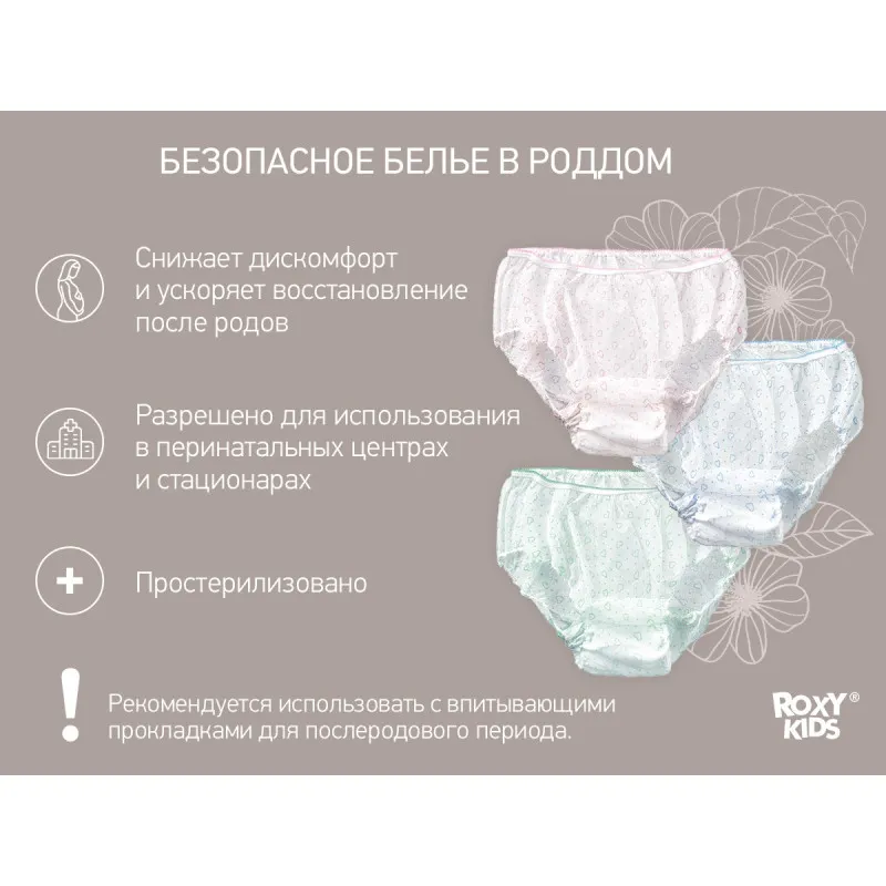 Chiloții igienici ROXY-KIDS de unică folosință sunt proiectați special pentru perioada postpartum și sunt confecționați din spunbond medical, care combină proprietățile respirabile și aderența ridicată cu stratul adeziv al tamponului postpartum.