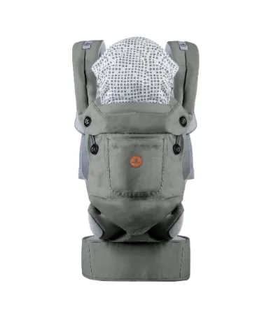 Marsupiul este potrivit pentru copiii cu varsta de 5+ luni pana la 15 kg si poate fi folosit in trei pozitii: cu fata catre parinte, cu fata in fata si pe spatele parintelui. Este realizat din materiale de inalta calitate: 100% bumbac si o captuseala din plasa respirabila din 100% poliester, facandu-l potrivit pentru toate anotimpurile. Dispune de o gluga pentru a proteja capul bebelusului, un buzunar practic pentru accesorii si asigura o forma ergonomica M pentru picioarele bebelusului. O talie lata, reglabila, cu velcro si bretele captusite, distribuie uniform greutatea, protejand spatele si talia parintelui. Produsul este potrivit pentru spalarea mainilor.