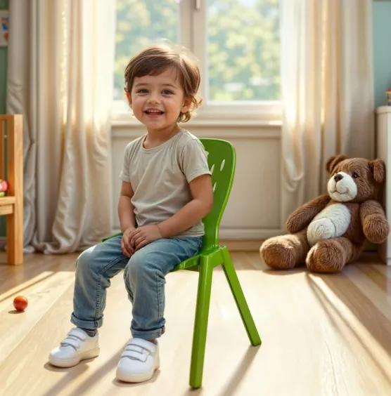 Scaun pentru copii din plastic, ușor și practic, ideal pentru utilizare zilnică atât în interior, cât și în exterior. Designul ergonomic oferă o poziție confortabilă, fiind potrivit pentru joacă, desen sau alte activități.