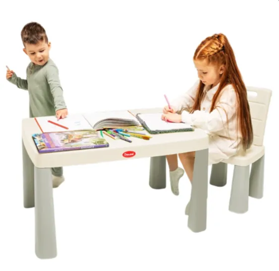 Set masă și 2 scaune pentru copii conceput pentru activități zilnice precum desen, joacă sau învățare. Oferă un spațiu propriu unde copilul se poate juca și își poate dezvolta creativitatea.