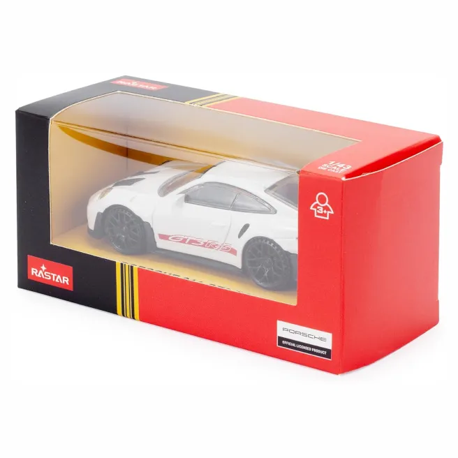 Mașina de jucărie Porsche 911 GT3 RS la scara 1:43 de la Rastar este o jucărie amuzantă la scara 1:43, prezentată într-o cutie colorată de carton cu fereastră, perfectă pentru micii pasionați de mașini. Datorită finisajului strălucitor, jocului simplu prin împingere și dimensiunii convenabile pentru mâinile mici, aceasta va fi o achiziție excelentă pentru banii de buzunar sau un mic cadou pentru copiii care iubesc mașinile.