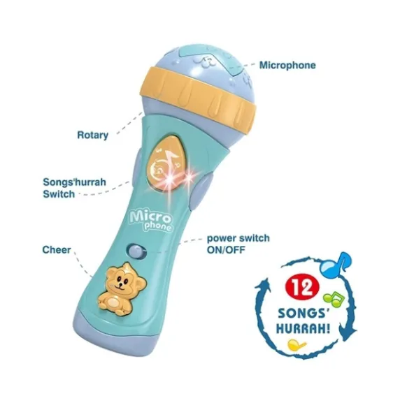 Acest microfon muzical transformă orice cântat într-un spectacol vesel și captivant! Are 12 melodii încorporate și efecte luminoase care fac jocul distractiv și plin de culoare. Designul ușor și ergonomic îl face simplu de utilizat pentru copii.