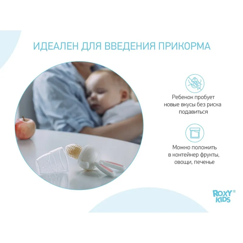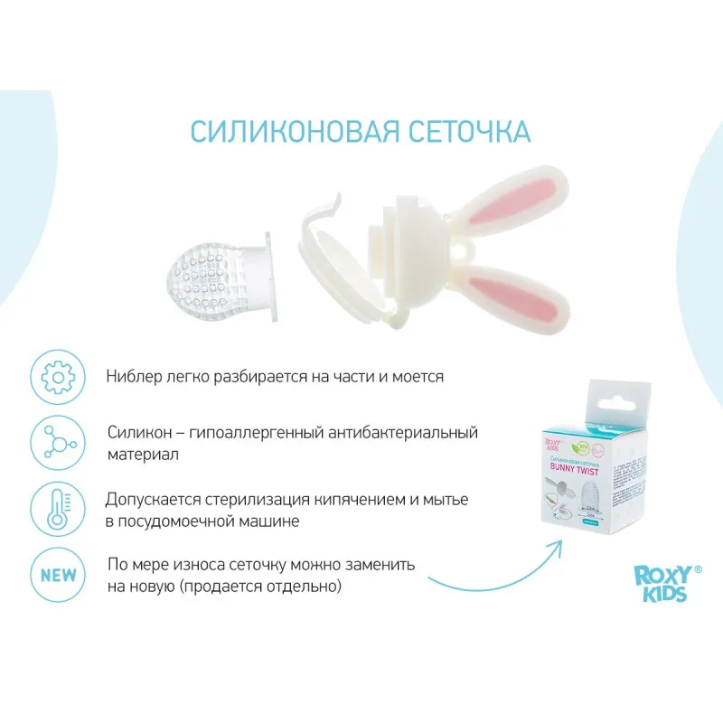Niblerul BUNNY TWIST pentru introducerea primei alimente complementare de la ROXY-KIDS este sigur și ușor de utilizat.