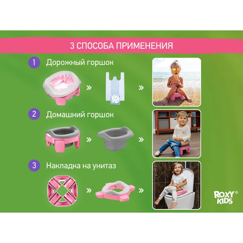 Oliță de călătorie Roxy Kids HandyPotty 3in1 (HP-255E) Roz+Violet