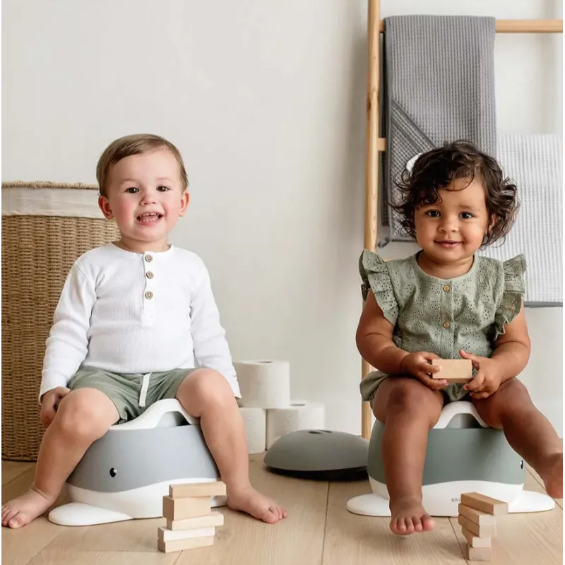 Olița Pottili în formă de balenă cu spate și capac pentru antrenament la toaletă. Ideal pentru un cadou.