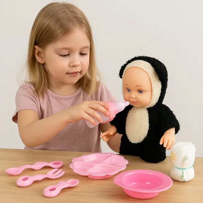 Păpușa sau bebelușul este un prieten perfect pentru jocurile de rol, ajutând copilul să își dezvolte imaginația, creativitatea și abilitățile emoționale. Designul atrăgător, materialele plăcute și detaliile bine realizate fac joaca mai realistă și captivantă.