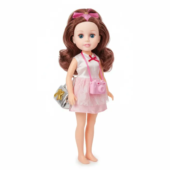Păpușa are trăsături faciale plăcute și este îmbrăcată într-o rochie roz și albă. Setul include accesorii la modă, care sunt vizibile pe cutie. Este vorba despre o poșetă de jucărie de culoare argintie cu o fundă aurie și un aparat foto sau o cameră video de jucărie.