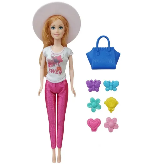 Păpușă 11,5" cu poșetă și set de agrafe de păr, în pantaloni, cod 990188