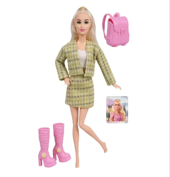 Setul de joacă cu păpușa la modă din seria Beauty Happy Partner te cufundă în lumea stilului și a călătoriilor. Grațioasa blondă înaltă de 29 cm (11,5 inci) este îmbrăcată într-un costum elegant cu imitație de tweed, format dintr-o jachetă scurtă și o fustă mini. Setul include un rucsac roz stilat, cu curele și fundă, precum și un set original de cizme roz înalte, cu platformă și toc.