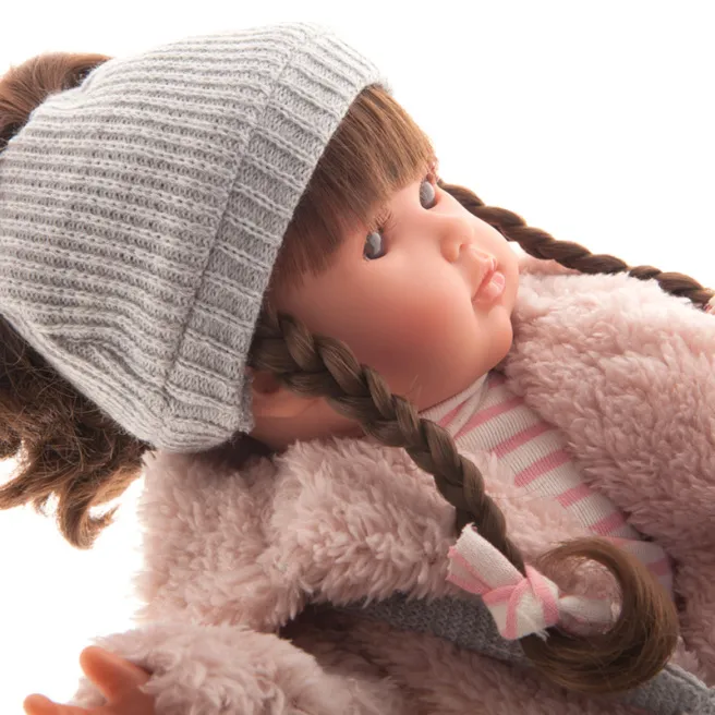 Păpușa Bella în haine gri-roz călduroase cu poșeta, cod 48306