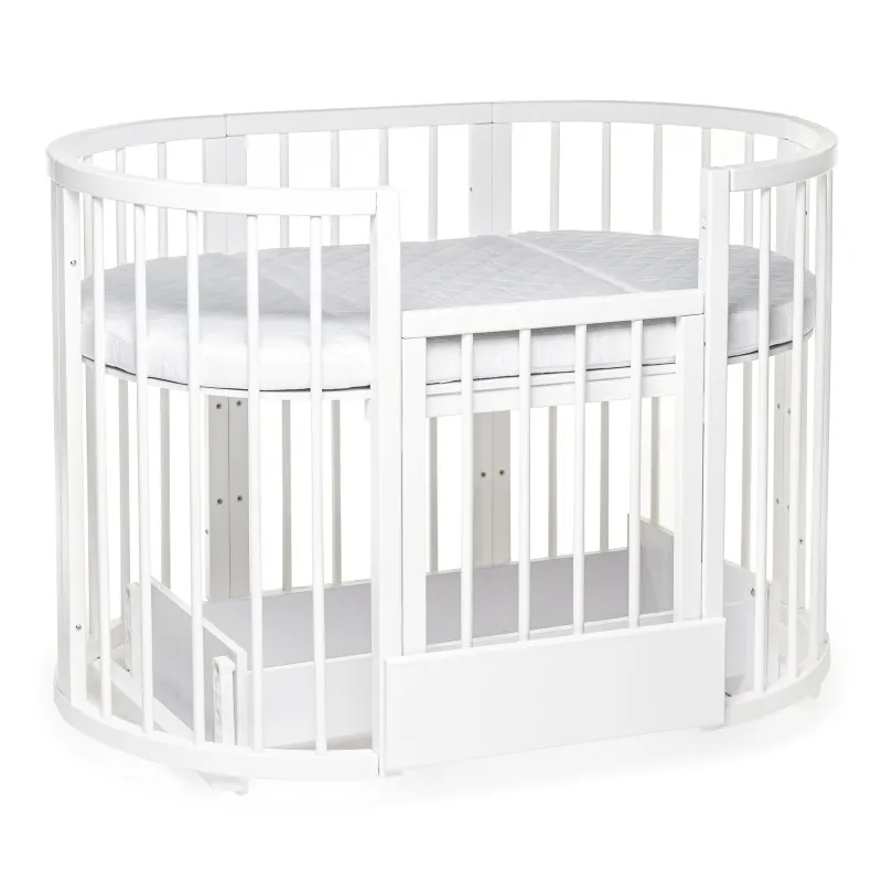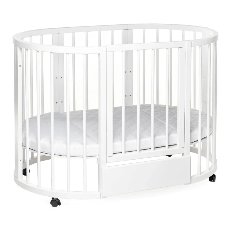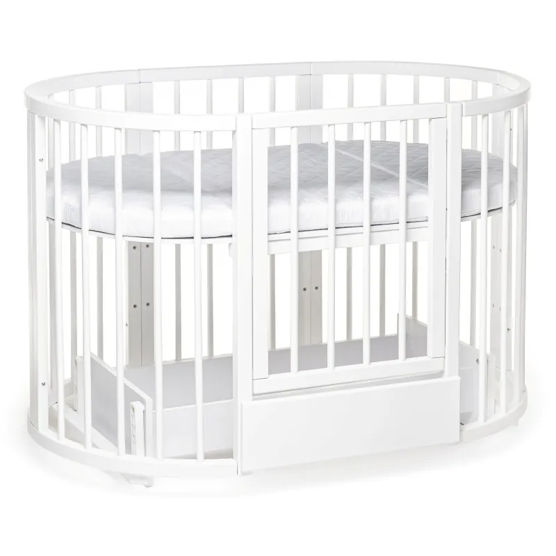 Pătuțul transformer rotund/oval Olivia a fost creat special pentru a aduce mama și copilul mai aproape - acum mama se poate apropia de bebeluș din orice parte a pătuțului.Este ideal pentru orice apartament deoarece colțurile „decupate” economisesc până la 40% din spațiu în comparație cu un pat dreptunghiular obișnuit!Marginile rotunjite nu vor permite copilului dvs. să se lovească, iar reglarea pe înălțime vă permite să ajustați pătuțul la nevoile copilului și ale părinților.Pătuțul vă va permite, de asemenea, să economisiți la achiziționarea de mobilier separat.Modalitățile de transformare:- Leagăn pentru nou născut 70x70;- Leagăn + mecanism de balansare transversal 70x70;- Masa de înfășat + rafturi;- Pat pe roți 70x120;- Pătuț + mecanism de balansare transversal 70x120;- Pat lateral fără perete 70x120;- Canapea pentru copil până în 3 ani;- 2 scaune pentru hrănire și jocuri, semicirculare;- Masă pentru hrănire, jocuri;