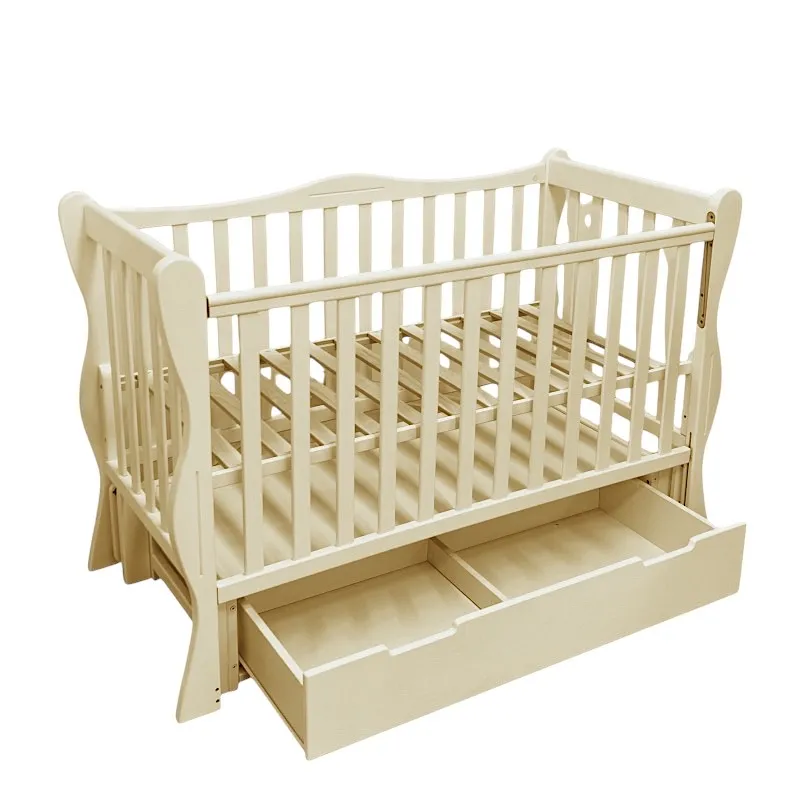 Mecanismul de legănare a patului este - pendul transversal. Prin urmare, cu ajutorul rulmenților metalici, părinții își pot adormi copilul în tăcere. Dacă este necesar, rulmenții pot fi fixați cu ușurință, iar patul va fi într-o poziție statică. Deasemenea patul este completat cu sertar închis pentru depozitarea lucrurilor.