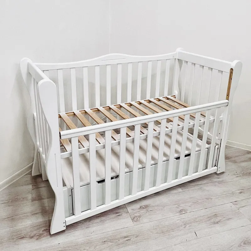 Mecanismul de legănare a patului este - pendul transversal. Prin urmare, cu ajutorul rulmenților metalici, părinții își pot adormi copilul în tăcere. Dacă este necesar, rulmenții pot fi fixați cu ușurință, iar patul va fi într-o poziție statică. Deasemenea patul este completat cu sertar închis pentru depozitarea lucrurilor.