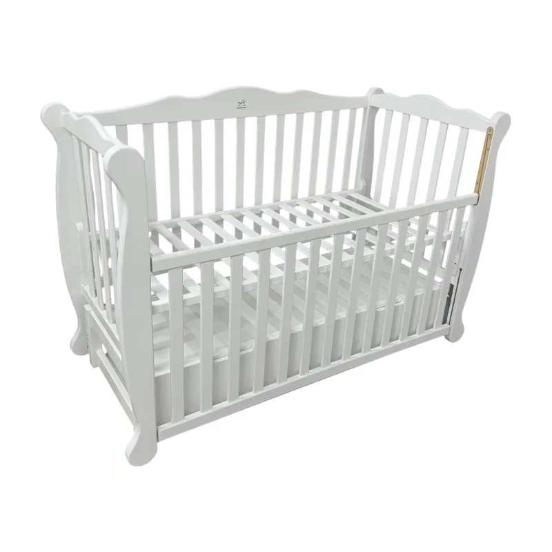 Mecanismul de legănare a patului este - pendul transversal. Prin urmare, cu ajutorul rulmenților metalici, părinții își pot adormi copilul în tăcere. Dacă este necesar, rulmenții pot fi fixați cu ușurință, iar patul va fi într-o poziție statică. Deasemenea patul este completat cu sertar închis pentru depozitarea lucrurilor.