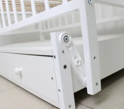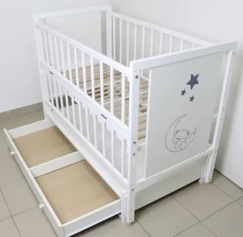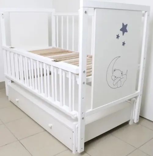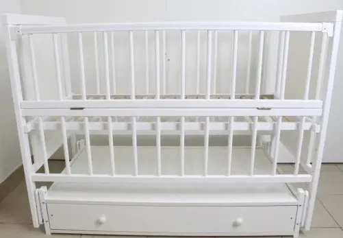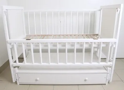 Patutul Kuzya este realizat din lemn si este considerat cel mai sigur si de cea mai buna calitate pentru bebelus. Patul este realizat din fag și vopsit cu lacuri și vopsele pe bază de apă, toate colțurile sunt rotunjite, deci este absolut sigur pentru un nou-născut. Pentru confortul bebelusului patucul este accesoriat cu un mecanism de balansare, de asemenea, patul este echipat cu un sertar pentru lenjerie și o laterală pliabilă.