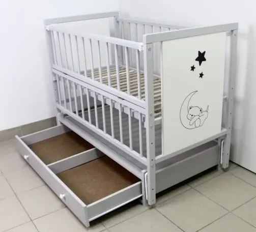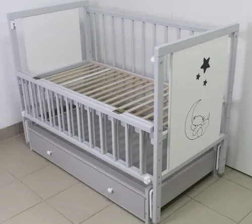 Patutul Kuzya este realizat din lemn si este considerat cel mai sigur si de cea mai buna calitate pentru bebelus. Patul este realizat din fag și vopsit cu lacuri și vopsele pe bază de apă, toate colțurile sunt rotunjite, deci este absolut sigur pentru un nou-născut. Pentru confortul bebelusului patucul este accesoriat cu un mecanism de balansare, de asemenea, patul este echipat cu un sertar pentru lenjerie și o laterală pliabilă.