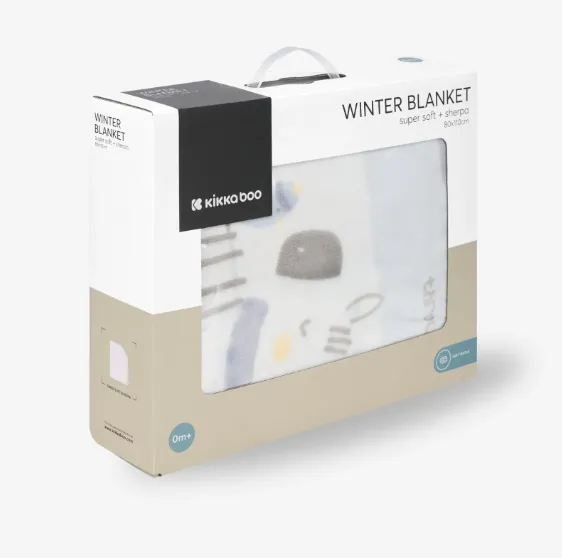 Păturică Kikkaboo Sherpa Stripy Friends Blue, 80x110 cm