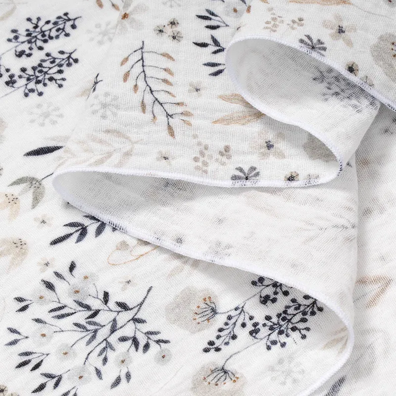 Țesătura este muselină șifonată premium, de înaltă calitate. Această țesătură este foarte respirabilă, absoarbe bine apa și se usucă rapid. Tehnologia specială sigură de vopsire a țesăturilor vă permite să mențineți rezistența culorii și luminozitatea designului chiar și după spălări repetate.