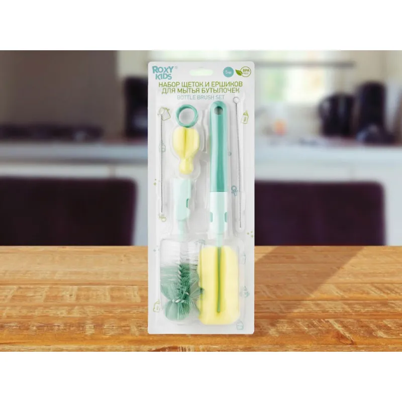 Setul de perii și perii ROXY-KIDS este conceput special pentru spălarea sticlelor, tuburilor, tetinelor și ajută la realizarea acestei proceduri zilnice cât mai rapidă și convenabilă posibil.