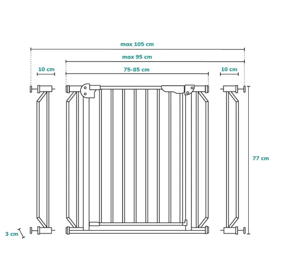 Set: Poartă cu lungimea de 75 cm și 2 extensii de câte 10 cm fiecare