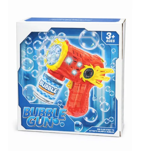 Pistolul electric pentru bule de săpun este o jucărie colorată și captivantă pentru copii, care creează un șir de bule de săpun cu o singură apăsare de buton.