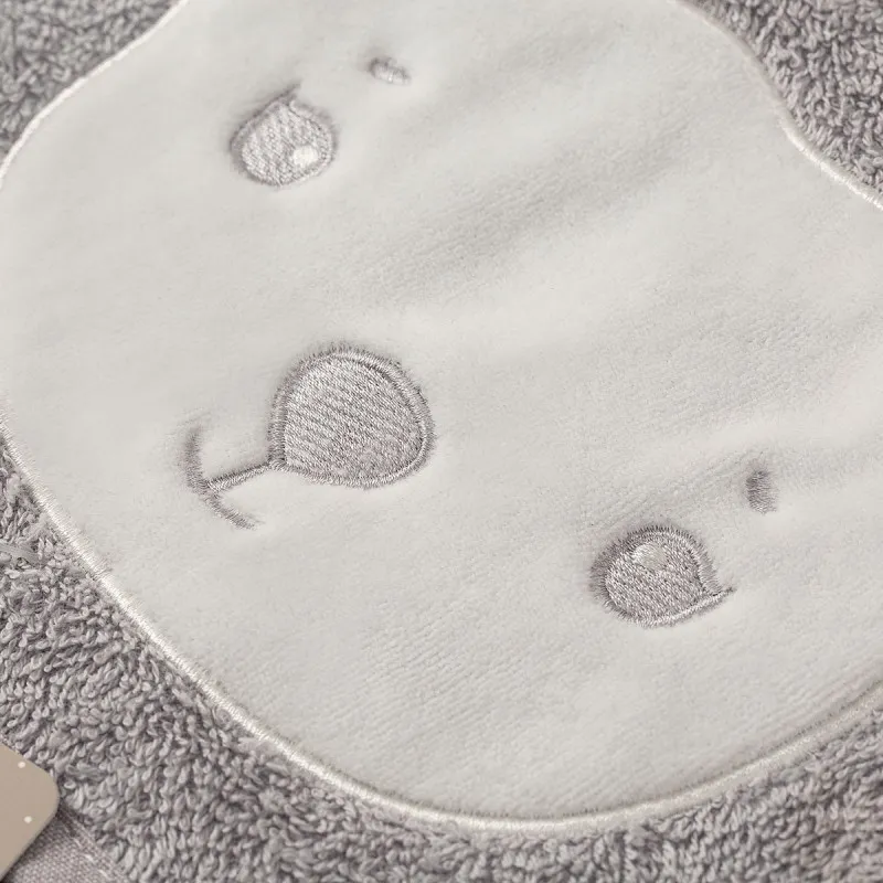 Prosopul moale și natural Muzzle va transforma baia într-un joc captivant. Gluga cu o față drăguță și urechi voluminoase este atât un detaliu practic, cât și drăguț care îți ridică moralul.