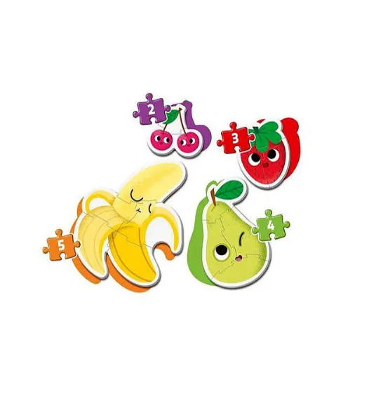 Puzzle Clementoni „2+3+4+5. Primele mele puzzle-uri — Fructe” este un set colorat de puzzle-uri pentru copii, care îl ajută pe copil să descopere fructele, culorile și formele într-un mod distractiv. Piesele mari sunt ușor de ținut în mâinile mici, iar imaginile viu colorate fac procesul de asamblare deosebit de interesant și plăcut.