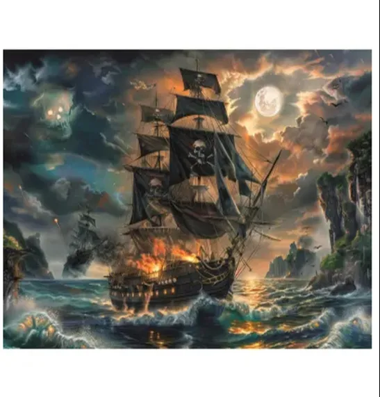 Puzzle Clementoni „Pirații mărilor fantomă”, 300 de piese este un puzzle colorat, cu o tematică captivantă inspirată din lumea piraților, potrivit pentru momente plăcute de relaxare acasă. După asamblare, se obține o ilustrație spectaculoasă cu o corabie și o atmosferă misterioasă de aventură marină, care îi va atrage în mod special pe iubitorii poveștilor cu pirați.