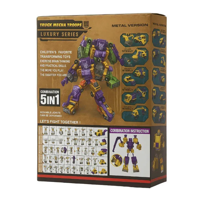 Robotul interactiv „Tehnică de construcții” este o jucărie transformabilă impresionantă din seria Truck Mecha Troops. Robotul este realizat într-o gamă cromatică elegantă, combinând elemente violet, galben și metalice. El se poate transforma dintr-un utilaj de construcții într-un mech de luptă puternic, ceea ce face jocul dinamic și captivant.