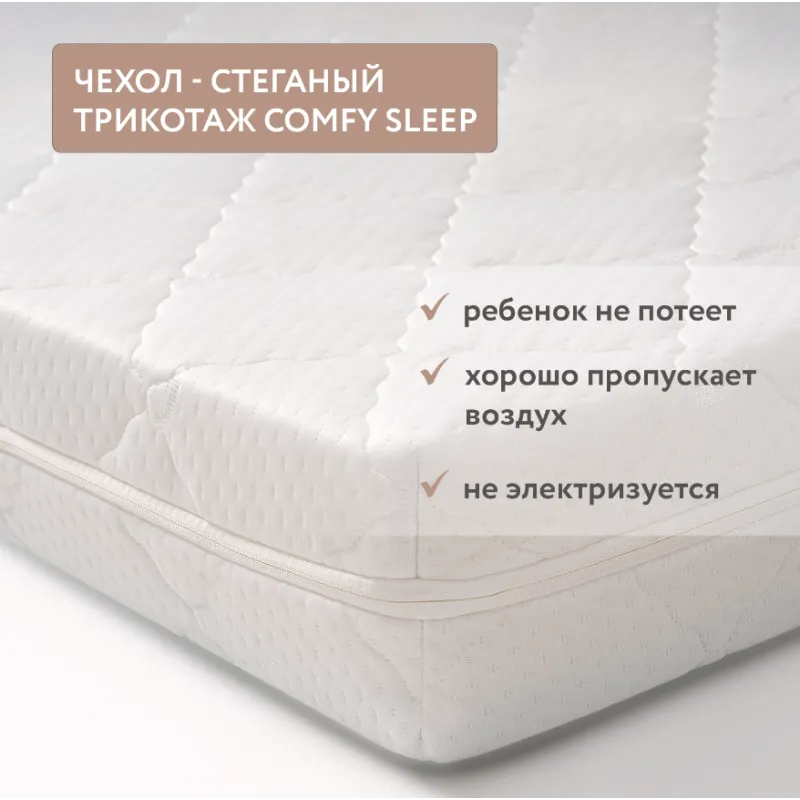 HUSĂ DETASABILĂ din țesătură matlasată cu două straturi. Suprafața moale și anti-alunecare oferă copilului tău un somn confortabil. Husa este bine ventilată și copilul nu va transpira pe o astfel de saltea. Fermuarul este cusut pe trei laturi ale husei, fiind mai usor de scos si pus dupa spalare.