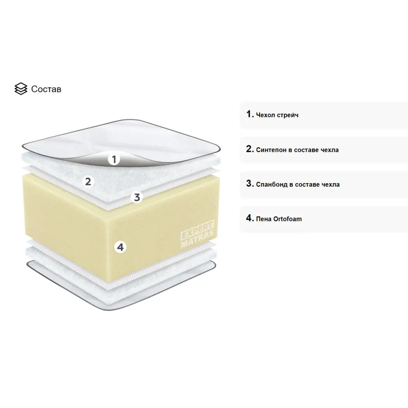 Ortofoam™ este material ecologic care oferă o poziție confortabilă și naturală pentru corpul uman atunci când este întins. Principalul avantaj al materialului este structura sa celulară. Structura celulară distribuie optim sarcina corpului atunci când este culcat și permite aerului să circule liber în interiorul produsului. Materialul este destul de dur, durabil și își păstrează proprietățile la orice temperatură și nu provoacă alergii.
