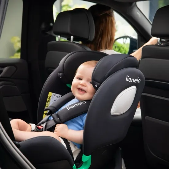 Lionelo Braam Air i-Size este un scaun auto modern 4-in-1, conceput pentru copii cu o inaltime cuprinsa intre 40 si 150 cm. Montarea scaunului este facilitata de sistemul ISOFIX si piciorul de stabilizare, permitand atat pozitionarea cu fata, cat si cu spatele la directia de mers, in functie de inaltimea copilului. Scaunul este integrat cu baza rotativa EasyTurn la 360 grade pentru a facilita punerea si scoaterea copilului din scaun. Caracteristica principala care distinge scaunul nostru auto este sistemul avansat de ventilatie. Braam Air i-Size este echipat cu un ventilator incorporat, alimentat prin bricheta masinii, care extrage aerul, promovand o buna circulatie. In plus, carcasa scaunului are orificii speciale de ventilatie pentru a imbunatati fluxul de aer. Insertia de reductie Dri-Seat integrata, ergonomica, este destinata celor mai mici copii. Prin aplatizarea scaunului, aceasta insertie asigura pozitia anatomica corecta pentru sugari, prevenind in acelasi timp transpiratia.
