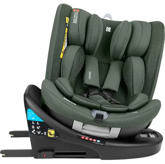 Scaun auto 40-150 cm (i-Size) Isofix KikkaBoo i-Reverse Army Green, rotativ 360