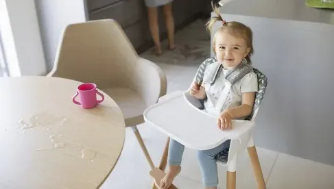 Datorită centurilor reglabile în 5 puncte cu protecție pentru șolduri, copilul este asigurat cu succes împotriva căderii și își păstrează o poziție adecvată în timpul mesei. Scaunul înalt a fost supus verificărilor și testelor amănunțite în laboratorul independent de certificare Intertek. Koen îndeplinește cerințele standardului european de securitate – EN 14988.
