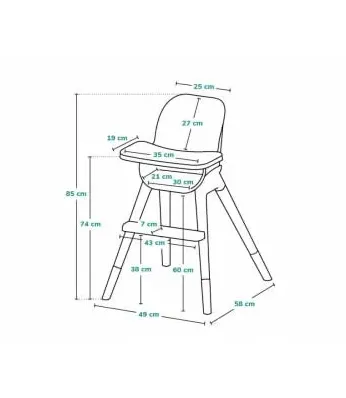 O structură reglabilă a lui Koen este realizată dintr-un lemn de fag durabil și plastic ABS . Finisat cu tampoane antiderapante, picioarele masive garantează stabilitatea și previn zgârierea podelei. Un spătar înalt și un suport pentru picioare care suspendă picioarele asigură confort și ajută la ușurarea coloanei vertebrale a copilului.