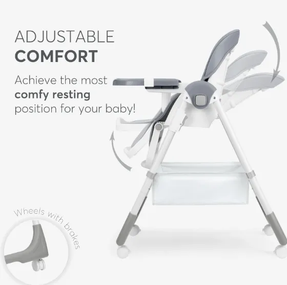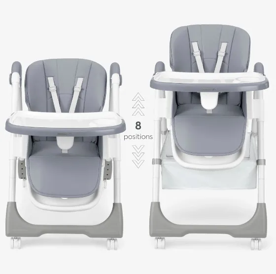 • Hrănire practică: tavă dublă detașabilă, cu suport pentru pahar și reglare în 3 poziții — flexibilitate și curățare ușoară.