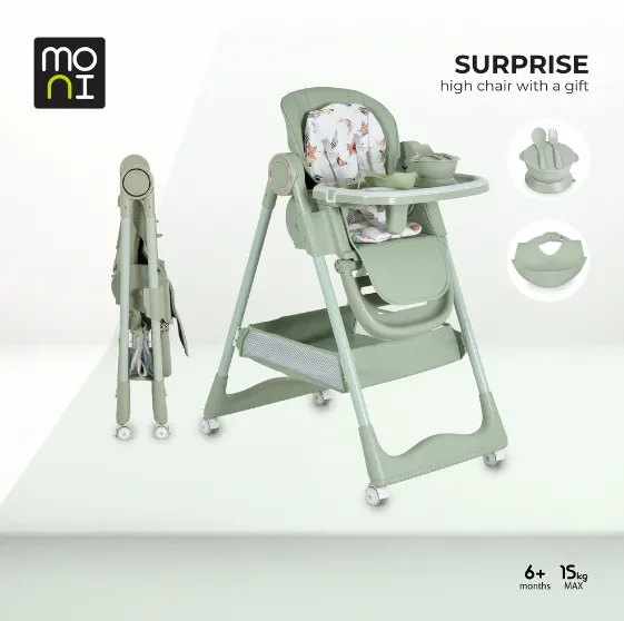 Creat cu grijă pentru micile aventuri culinare ale copilului tău, scaunul de masă Moni Surprise oferă confort, siguranță și multiple opțiuni de reglare la fiecare masă. Cu un design modern și accesorii incluse, este alegerea perfectă atât pentru copii, cât și pentru părinți.