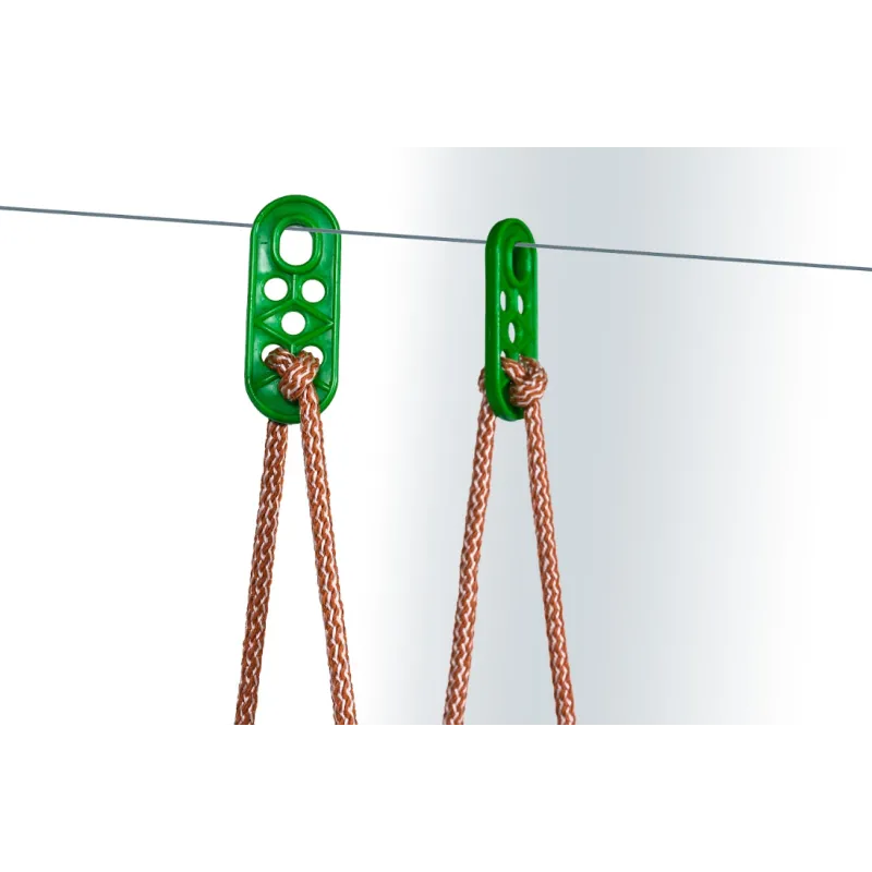 Такие качели можно использовать на подвесе в доме, на улице или как дополнительный элемент на детских площадках. Для прочного фиксирования в комплекте имеются пластмассовые крепления, соединенные с веревкой. При качании малыш сможет дополнительно держаться за веревки.